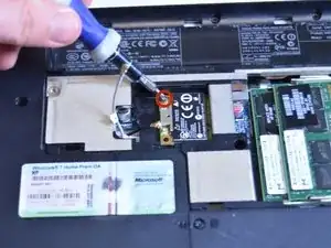 Используйте отвертку Phillips #0, чтобы убрать единственный винт длиной 4 мм с угла беспроводной карты.