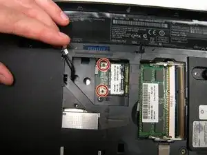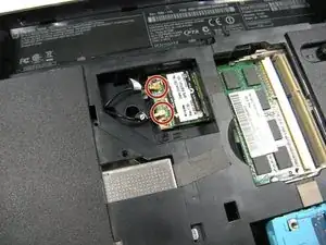 Возможно, придётся слегка отогнуть кабели от беспроводной карты, чтобы выкрутить винты.