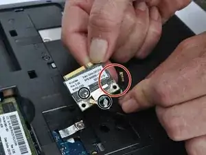 С помощью пальцев отсоедините коаксиальные кабели от беспроводной карты.