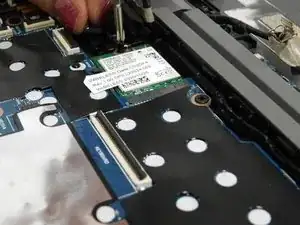 Удалите винт 3 мм, фиксирующий беспроводную карту, с помощью отвертки JIS #0.