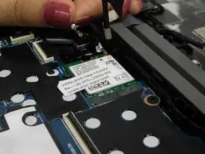 Отсоедините оба антенных кабеля, подключённые к беспроводной карте.