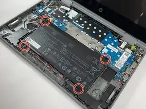 Удалите четыре винта 3 мм, крепящие аккумулятор, с помощью отвертки JIS #0.