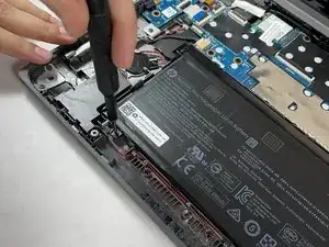 Подденьте аккумулятор от корпуса ноутбука медиатором.