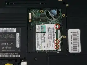 Перед снятием беспроводной карты определите три провода, которые нужно отсоединить.