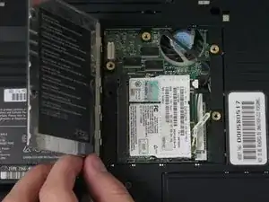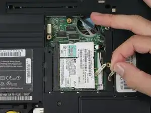 При установке новой беспроводной карты вставьте карту под тем же углом, под которым она выскочила. Затем просто нажмите карту вниз, чтобы зафиксировать её в гнезде.