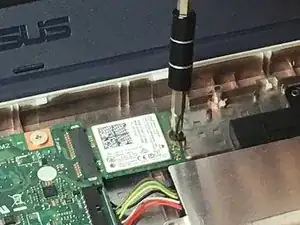 Открутите единственный винт диаметром 4 мм с головкой Phillips #1, который фиксирует беспроводную карту на месте.