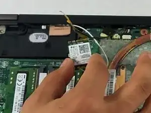Один или оба антенных кабеля, подключённых к беспроводной карте, могут отщёлкнуться на этом этапе. Это нормально.