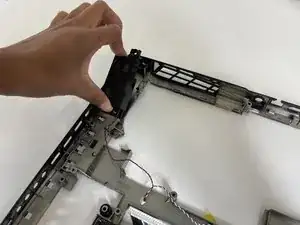 Выньте левый динамик, следуя за проводом и отщёлкивая его по ходу движения к следующему компоненту.