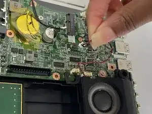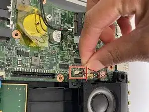 Поднимите пластиковую крышку и отключите кабель, подключенный рядом с динамиком.