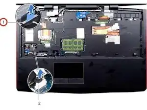 Подключите кабель дисплея, кабель разъёма видеокарты и кабель платы светодиодной подсветки логотипа к соответствующим разъёмам на системной плате.