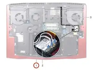 Отключите кабель платы светодиодной подсветки логотипа от разъёма на системной плате.