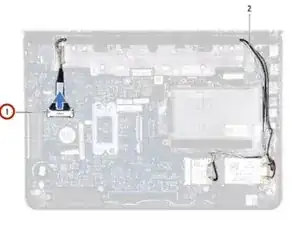 Отсоедините кабели антенны модуля Mini-Card от модуля(ов) Mini-Card.