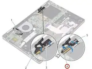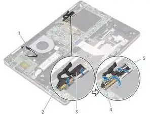 Откройте защёлки, чтобы отключить кабель дисплея и кабель платы сенсорного экрана от системной платы.
