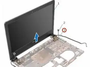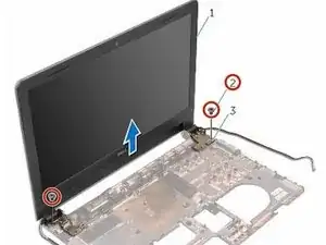 Снимите винты, фиксирующие петли дисплея к основанию компьютера.