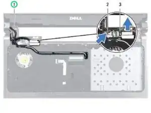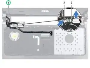 Отключите кабель дисплея от разъёма на системной плате и снимите винт для заземления кабеля дисплея.