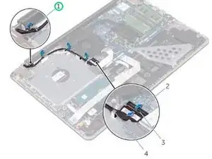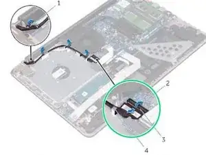 Отметьте маршрут кабеля дисплея и вытяните кабель из направляющих маршрутизации.