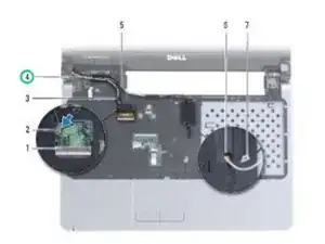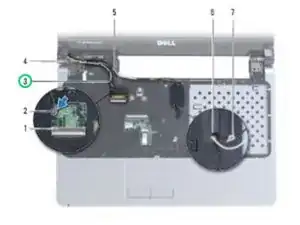 Проложите кабели антенны мини-карты и кабель дисплея через направляющие.