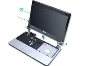 Удерживайте дисплей, пока откручиваете три винта, крепящих блок дисплея к основанию компьютера.