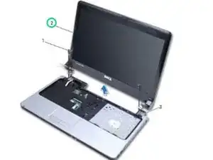 Открутите два винта в нижней части компьютера, которые крепят блок дисплея к основанию компьютера.