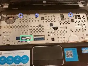 Удалите винты (как показано на фото); эти два винта крепят клавиатуру HP.