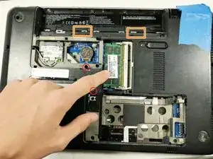 Найдите фиксатор на нижней части компьютера.