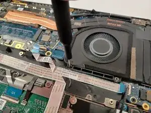 Используйте отвертку Philips #00, чтобы удалить шесть винтов по 2.5 мм, фиксирующих блок вентиляторов.