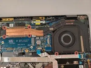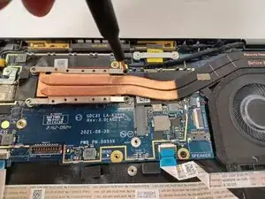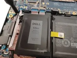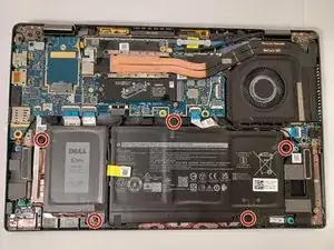 С помощью отвертки Philips #1 удалите пять винтов по 5 мм, закрепляющих батарею на материнской плате.