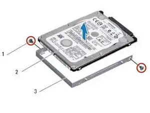 Удалите два винта, которые закрепляют крепление жесткого диска к самому жесткому диску.