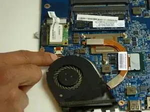 Осторожно снимите вентилятор с материнской платы, отсоединив пластиковую вставку, как показано на изображениях.