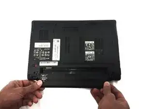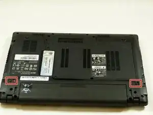 Переверните ноутбук и найдите замки кнопок для сброса батареи вашего ноутбука Acer.