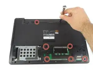 Снимите два винта 12 мм на нижней панели с помощью отвёртки Tri-wing Y1.