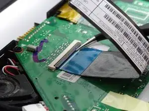 Поднимите маленькую фиксирующую защёлку для двух ZIF-коннекторов.