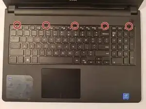 Вставьте лопатку рядом с пятью пластиковыми выемками в верхней части клавиатуры и аккуратно подденьте, чтобы освободить фиксирующие защёлки.