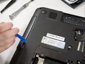 Снимите панель на дне ноутбука, сдвинув переключатель вправо.