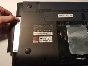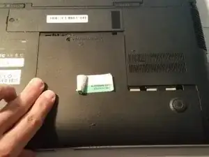 Переверните ноутбук так, чтобы дно смотрело на вас.