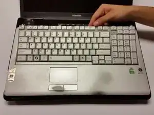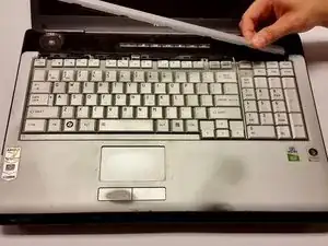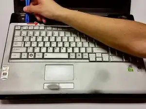 Подденьте левую сторону небольшой пластиковый планки в верхней части клавиатуры.