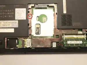 Используя отвертку Phillips #00, ослабьте пять винтов диаметром 5.4 мм вокруг задней панели ноутбука.