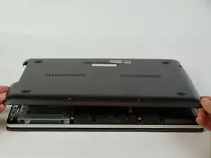 Используйте лопатку, чтобы вставить её между ноутбуком и нижней крышкой — поднимите вверх, чтобы открыть.