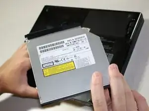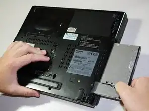 Продолжайте тянуть за язычок CD-привода, пока CD-привод полностью не выйдет.