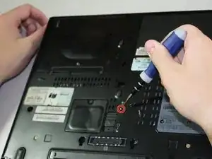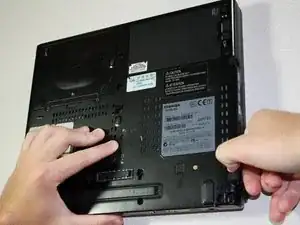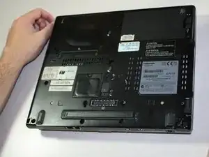 Переверните ноутбук так, чтобы он лежал на лицевой стороне.