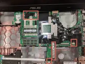 Отсоедините ленточные кабели, подключённые к материнской плате.