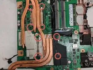 Снимайте материнскую плату вручную. Будьте осторожны, так как радиаторы вентиляторов соединены под экраном.