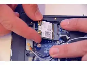 Приподнимите чипсет немного и вытащите его из разъёма mSATA.
