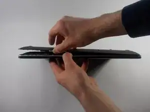 Разместите ноутбук вверх дном так, чтобы нижняя панель была обращена вверх.