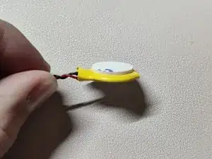 Установите новую CMOS-батарею на правильное место, клеем вниз.