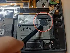 Удалите старый клеевой слой под CMOS-батареей. Лопатка или инструмент для поддевания могут помочь соскрести его с корпуса.