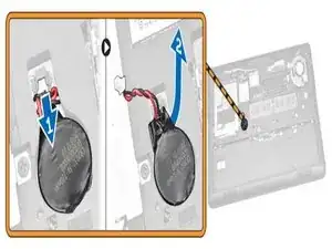 Подденьте кнопочную батарейку, чтобы снять ее с компьютера [2].