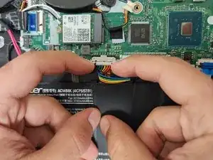 Отключите разъем материнской платы батареи пальцами.