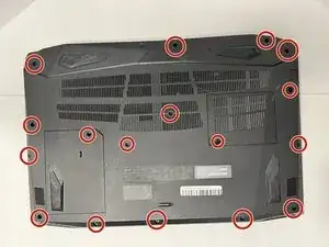 Используйте отвертку Phillips #0, чтобы открутить шестнадцать винтов по 9 мм, удерживающих заднюю крышку на месте.