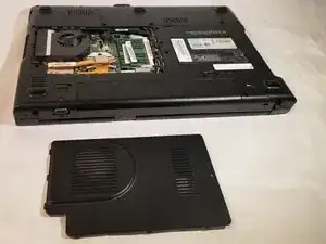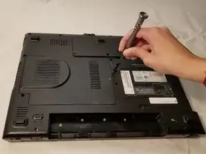 Используя отвертку Phillips #1, открутите четыре винта по 6 мм на задней панели ноутбука.